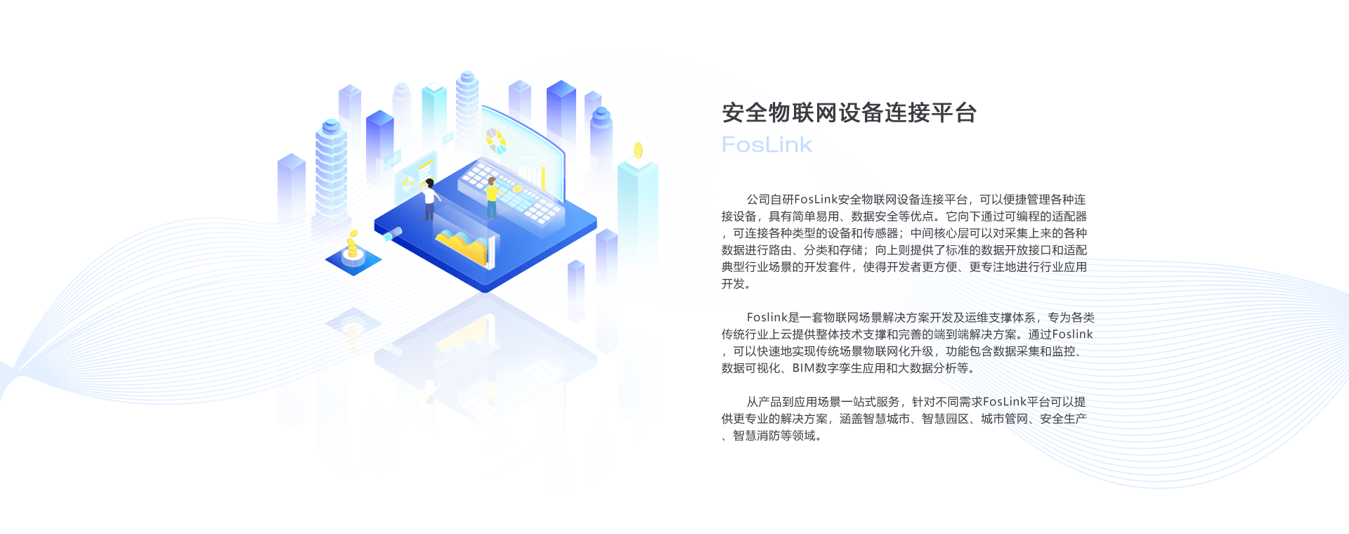Foslink是一套物聯(lián)網(wǎng)場景解決方案開發(fā)及運維支撐體系,專為各類傳統(tǒng)行業(yè)上云提供整體技術(shù)支撐和完善的端到端解決方案。通過Foslink,可以快速地實現(xiàn)傳統(tǒng)場景物聯(lián)網(wǎng)化升級,功能包含數(shù)據(jù)采集和監(jiān)控、數(shù)據(jù)可視化、BIM數(shù)字孿生應(yīng)用和大數(shù)據(jù)分析等。